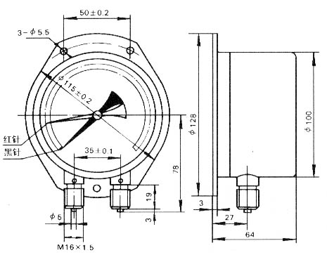YZS-102系列雙針壓力表由兩套各自獨立的測量系統和指示裝置等組成。