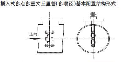 多喉徑風量測量裝置根據其插入點數的不同分為單點和多點兩種結構。結構圖如下: