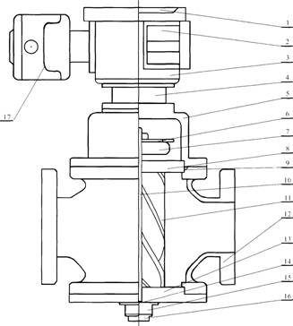 注:1、儀表盤2.電池3.二次表4.連接座5.U型帽6.發訊片7.定位齒輪8.上蓋板9.O型環10.軸11.轉子12.主體13., 上蓋板14.止推軸承15.調節螺釘16.底蓋17.遠傳體。