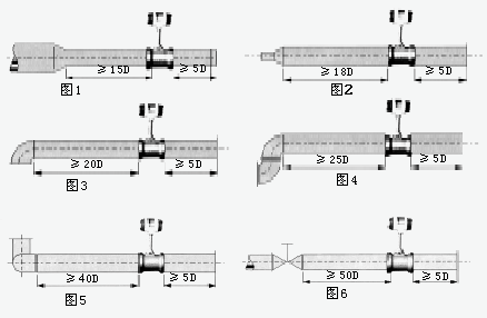 為了確保儀表正常、準(zhǔn)確運(yùn)行,傳感器安裝點(diǎn)的上下游須***有一定的直管道,以調(diào)整流場(chǎng),如圖所示。