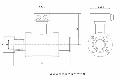 b、分體型:傳感器和轉化器分離安裝,通過連接電纜形成流量計量系統。